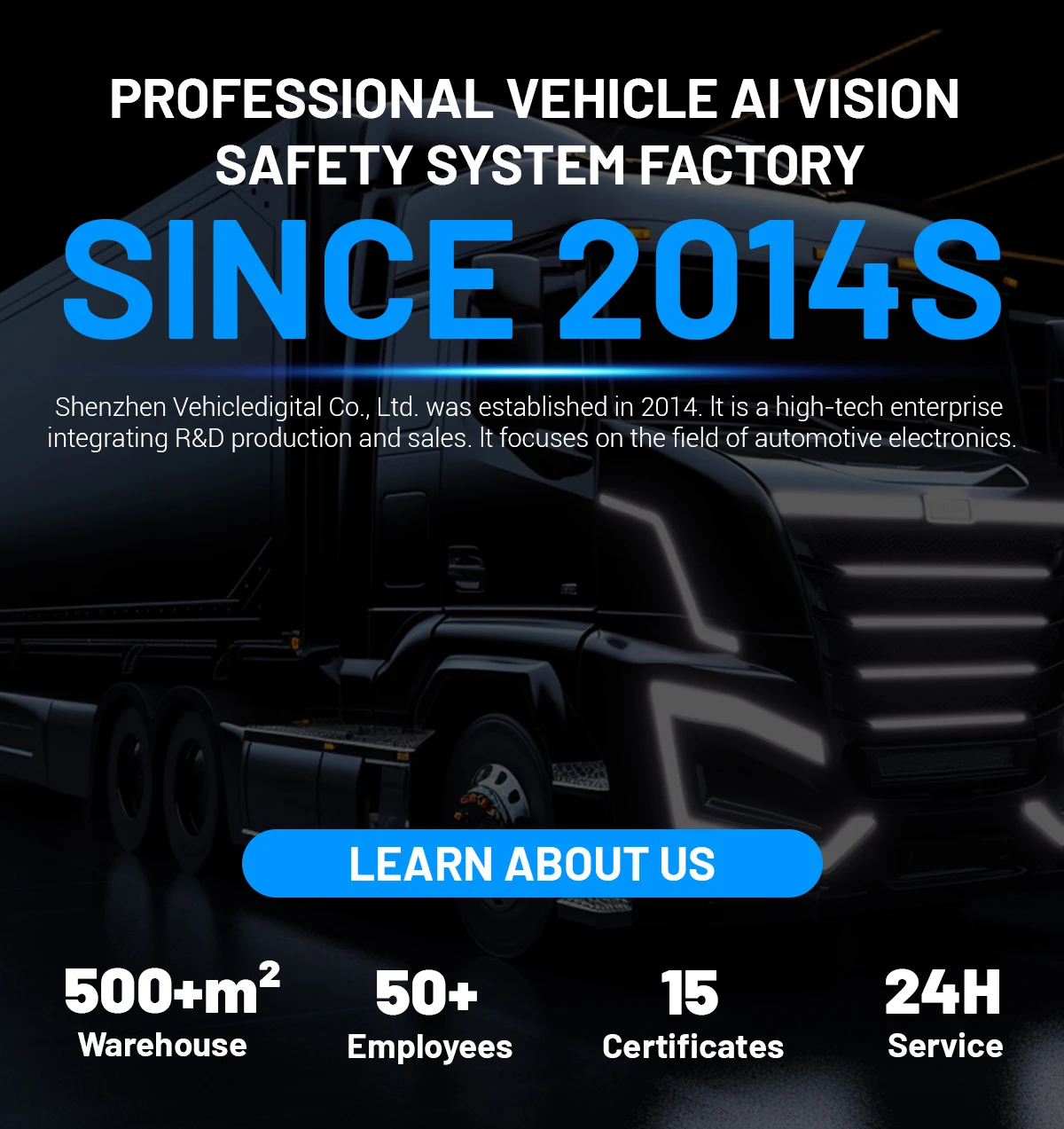 Shenzhen Vehicledigital Co., Ltd. was established in 2014. It is a high-tech enterprise integrating R&D, production and sales. It focuses on the field of automotive electronics. Its products mainly include: DVS & PSS Compliance Program, AI BSD Blind Spot Monitoring System, Radars Detection system, E-Side Mirror CMS Camera System, MDVR DMS + ADAS System,Inclinometer Angle System, Heavy Duty Digital Wireless AI Camera System, Forklift BSD System, car cameras, car monitors, car video recorders, car rear view systems, electronic rearview mirror, driving recorder,360 panoramic view system, image vision sensor camera module, Radars BSD, AI Camera BSD, etc.
