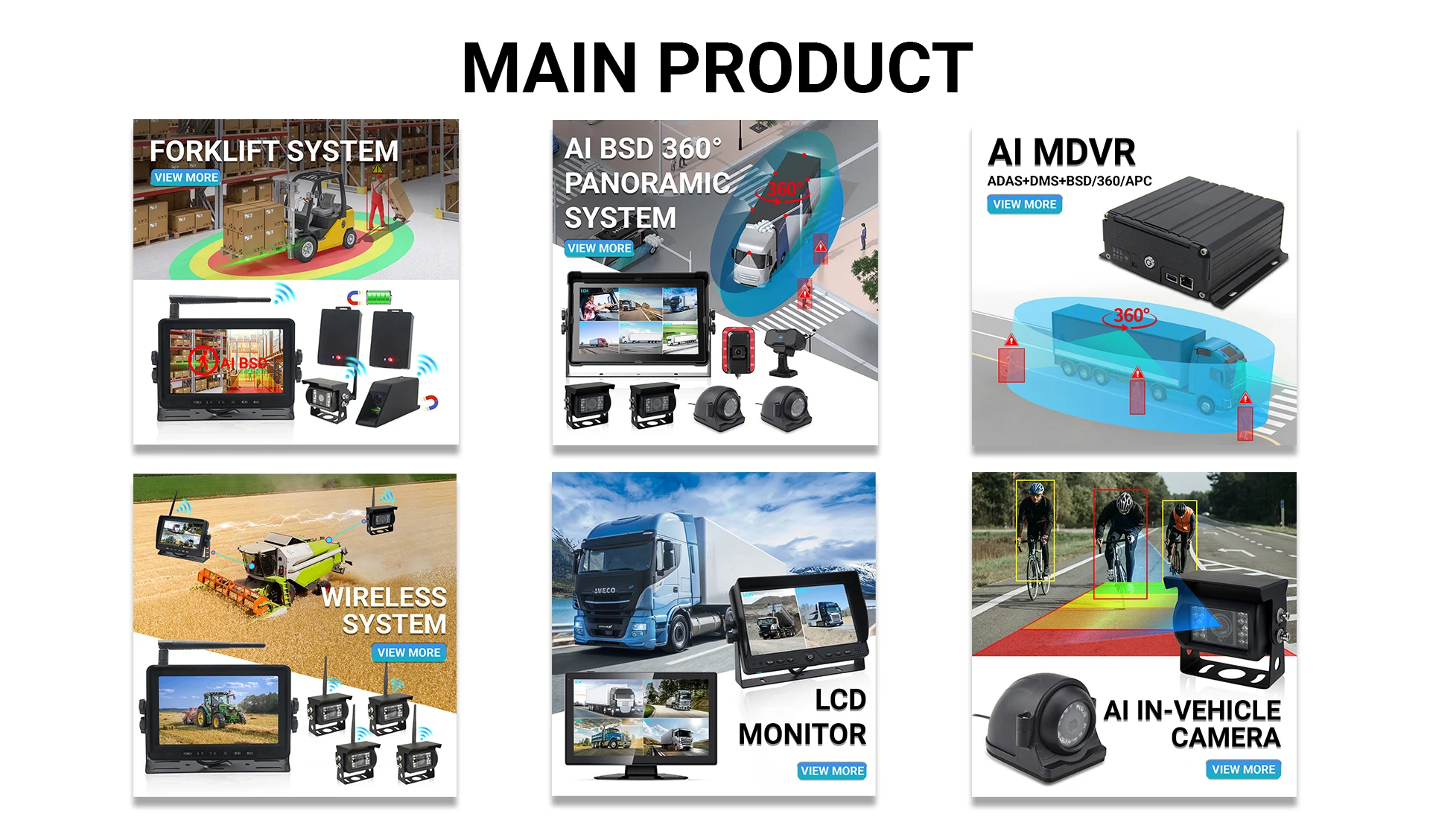 المنتجات الرئيسيةنظام مراقبة المركبات ، AI ، نظام إدارة أسطول الرافعة الشوكية ، كاميرا/شاشة مراقبة الشاحنات ، كابلات السيارات